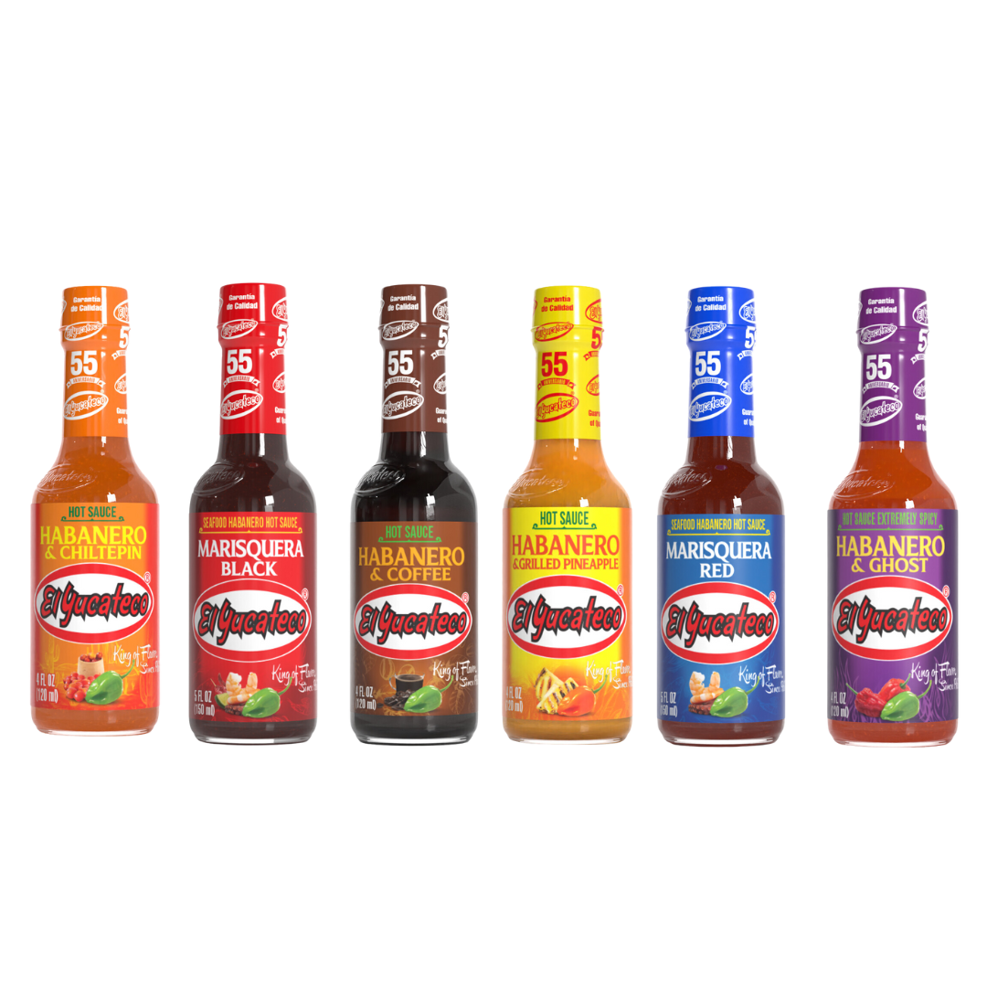 Choose from a flavorful array of hot sauce awesomeness to create your very own custom 6 pack of El Yucateco Sauces.